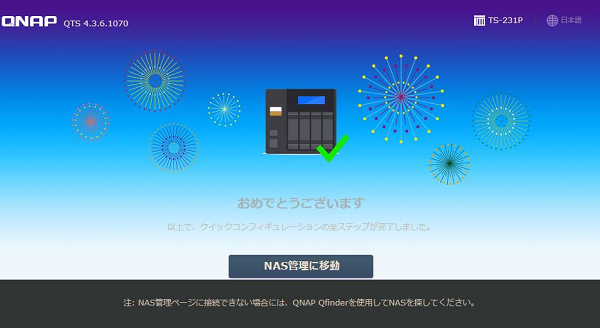 「NAS 管理」と出ますが、ここを押した後で応答無しになったので、