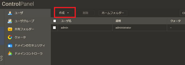 作成したボリュームを右クリックすると「共有フォルダの作成」が押せます。「共有フォルダの作成」を押す。